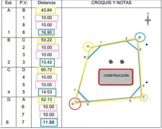 - En cada vértice hay que tomar datos de los azimut directo e inversos, luego se obtienen los rumbos.